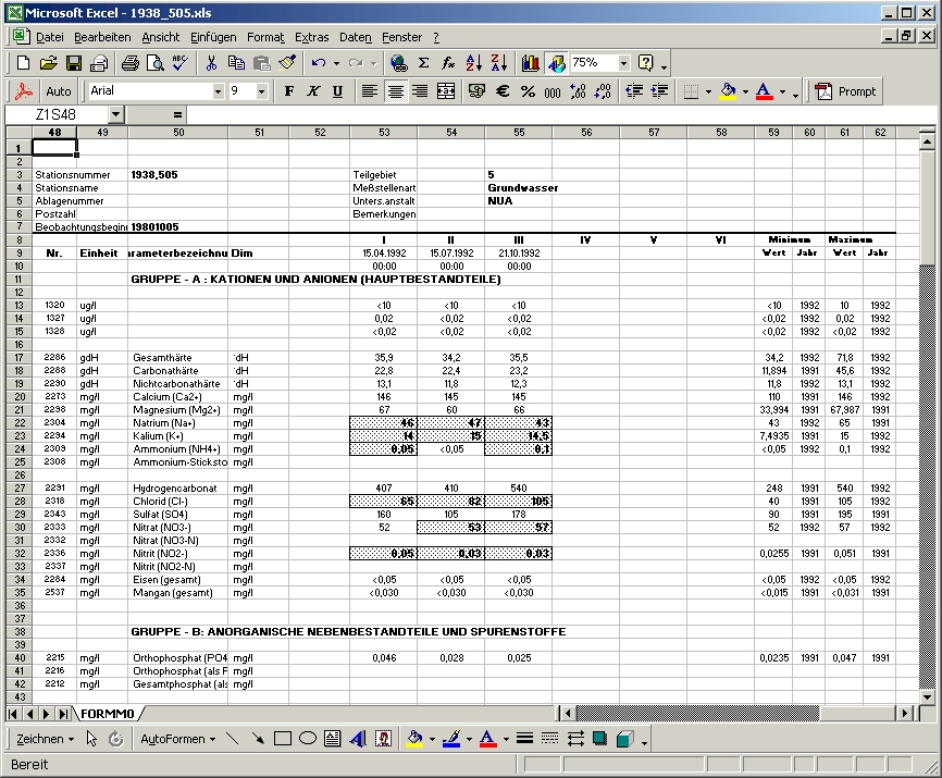 - automatische Überprüfung bei Import (z.B. Plausibilität) und Export (z.B. Schraffuren nach Grenzwertverletzungen, wie Trinkwassercodex)